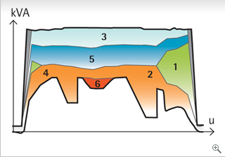 The energy savings are most effective when these strategies are applied simultaneously. The graph shows how the strategies can contribute to total energy savings in a building, and what the combined effect is on the power consumption of the lighting.